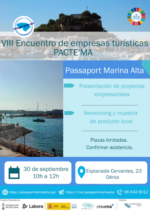 El VIII Encuentro de Empresas Turísticas PACTE’MA se celebrará el próximo 30 de septiembre a las 10:00 horas en Dénia, concretamente en la Esplanada Cervantes, 23, a bordo del barco de Mundo Marino, que permanecerá amarrado en puerto.