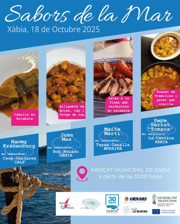 “Sabors de la Mar” forma parte de un proyecto impulsado por Creama como secretaría técnica de Pacte’Ma (Acuerdo Comarcal por el Empleo y el Desarrollo Local de la Marina Alta), con el apoyo de la Conselleria de Agricultura, Agua, Ganadería y Pesca y la Unión Europea, dentro del programa de fondos destinados a los Grupos de Acción Local de Pesca (GALP La Marina).