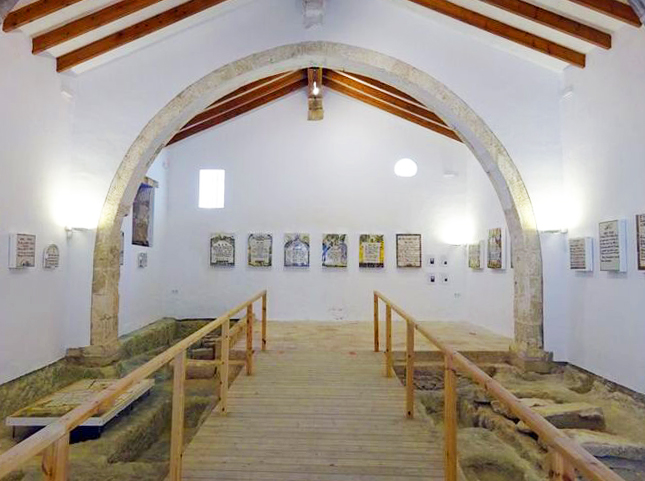 Por su parte, la ermita de conquista adyacente se convirtió en capilla funeraria en 1817 y acoge en su interior una treintena de tumbas de personas de relevancia de la villa que fallecieron entre ese año y 1849. Destaca en el conjunto los paneles de cerámica valenciana que muestran la cultura funeraria del momento.